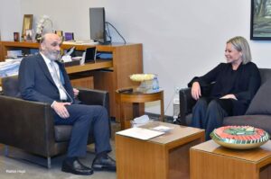 التقى رئيس حزب “القوات اللبنانية” سمير جعجع، في معراب، المنسّقة الخاصّة للأمم المتّحدة في لبنان جينين هينيس-بلاسخارت (Jeanine Hennis-Plasschaert)، في زيارة تعارفية، ورافقها من مكتب الشؤون السياسية ليزا مور ولينا القدوة، في حضور عضو تكتل “الجمهورية القوية” النائب رازي الحاج، رئيس جهاز العلاقات الخارجية الوزير السابق ريشار قيومجيان والمسؤول في الجهاز مارك سعد.